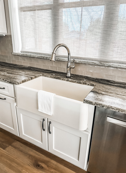 The clients wanted an up-to-date kitchen with modern farmhouse elements. Their goal was something fun, inviting, and bright! With a new grand baby on the way, it was essential to create a welcoming space where multiple generations could gather together and create lasting memories.